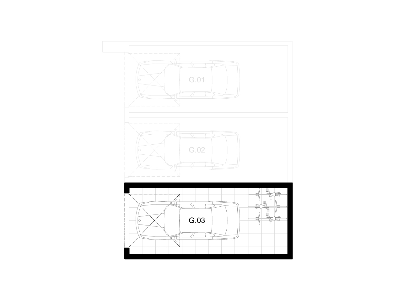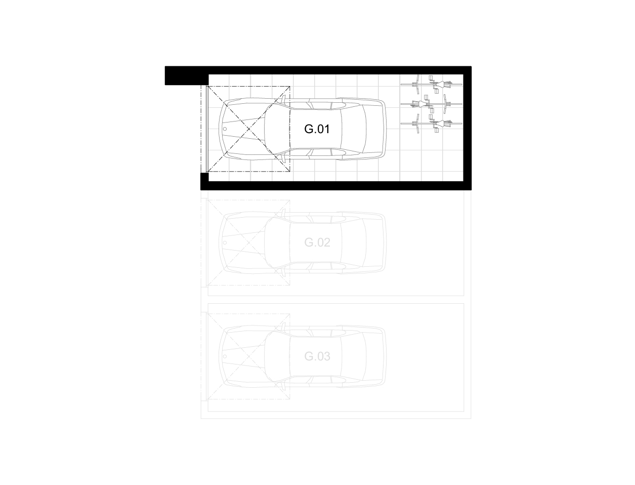 Samozřejmostí ke každé bytové jednotce je uzamykatelná garáž pro osobní automobil, která zároveň nabídne dostatek úložného prostoru. Ke garáži se dostanete suchou nohou.
