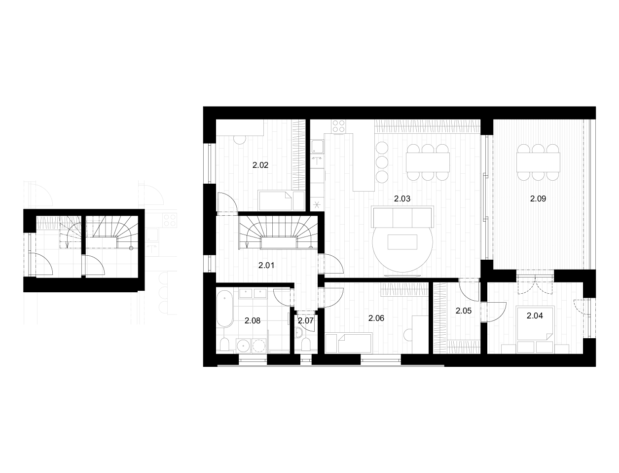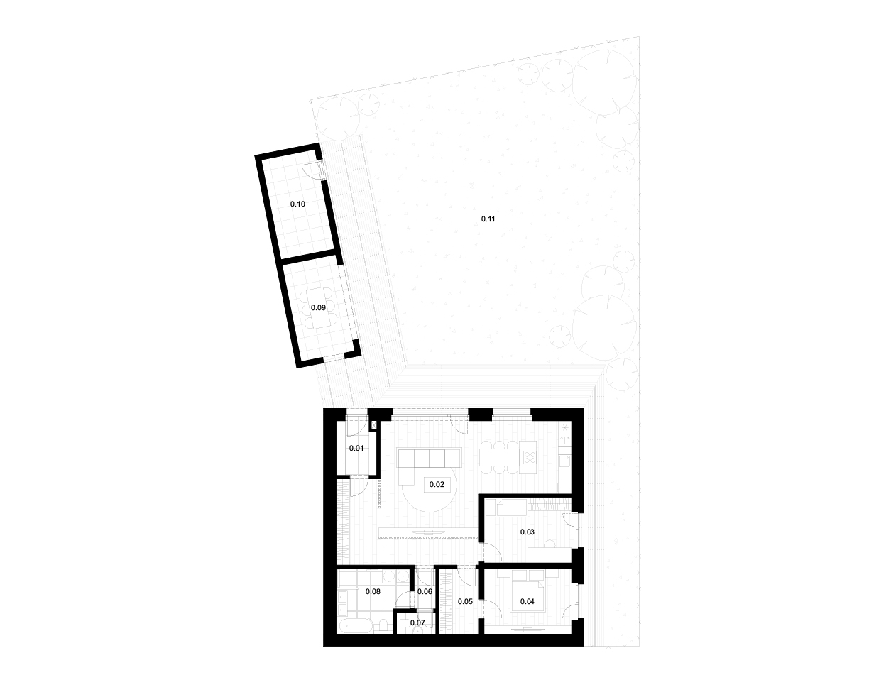 Cílem architektonického studia při návrhu tohoto Viladomu bylo zajistit residentům maximální soukromí a pocit života v rodinném domě, proto každý byt má svůj separátní vstup.